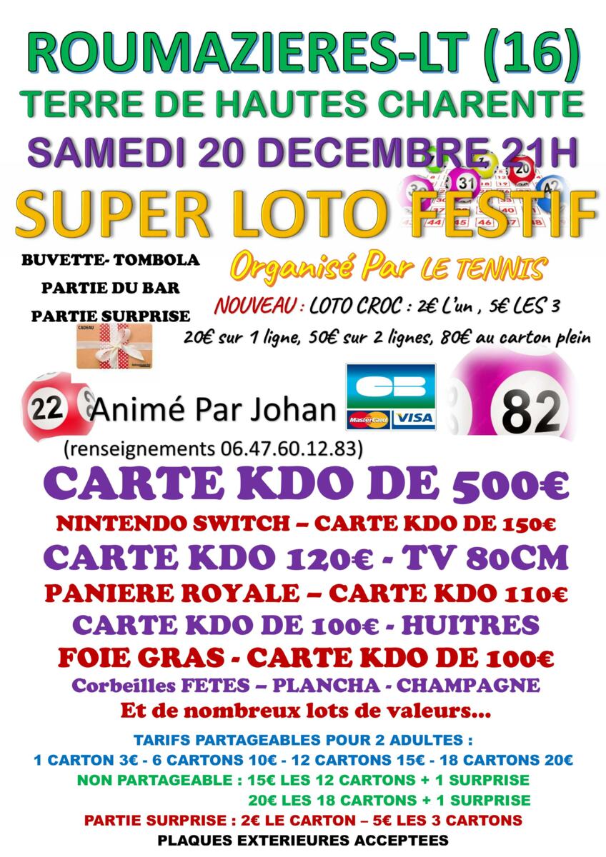 Organisons Notre LOTO Le SAMEDI 20 DECEMBRE 2025 à partir de 21H